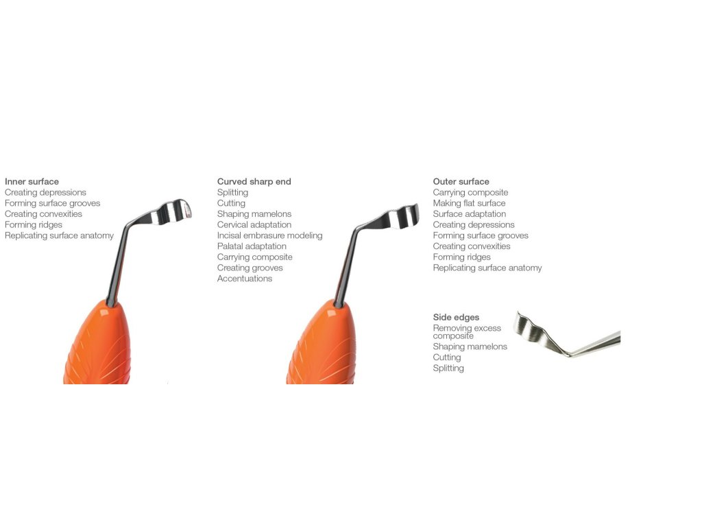 Urychluje adaptaci kompozitu a zároveň efektivně odstraňuje přebytečný materiál ve srovnání s běžnými nástroji. -
